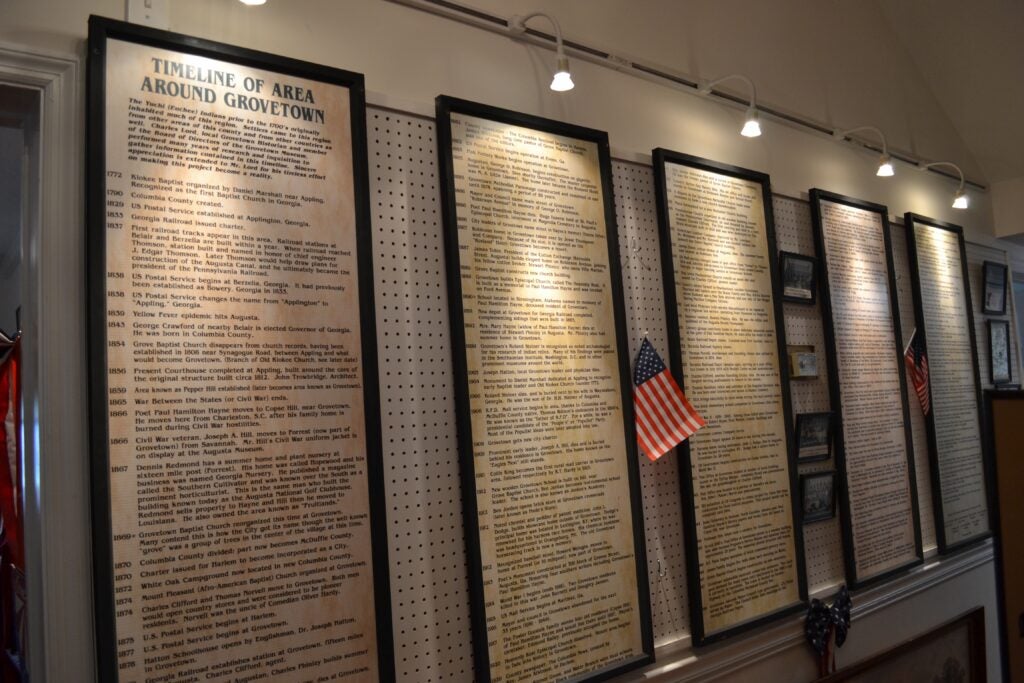 Along the hallway wall is a timeline of Grovetown and the surrounding area from 1772 up until now, Lord said. Up on the second floor is a model train that came through the area, Lord said, along with a variety of other items.