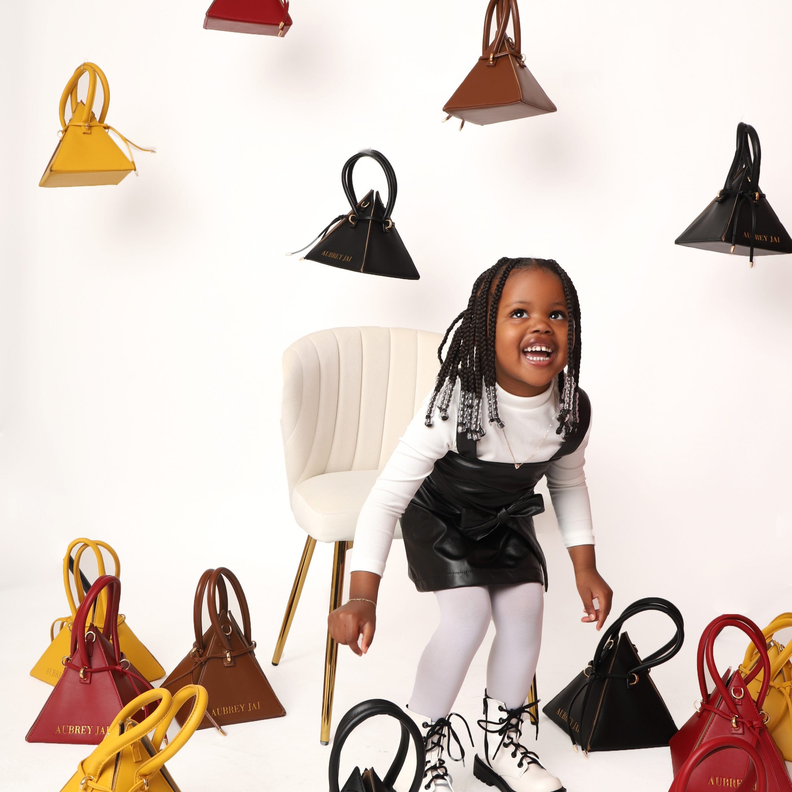 “She has a love for shapes,” said Sams about the origin of the handbags’ distinctive pyramid design. “I bought different shapes and blocks together, and she always tends to push together the triangles. That’s her thing. She tries to draw triangle-pyramid shapes.”