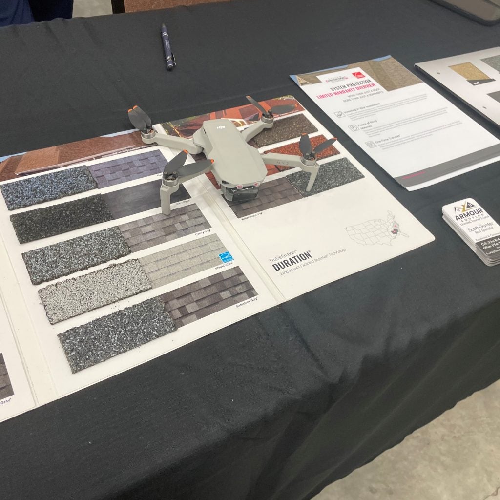 Scott Gunter and Weston Link of Armour Roofing set up a table, their first time participating in the trade show, primarily for networking and to gather business contacts, Gunter says.