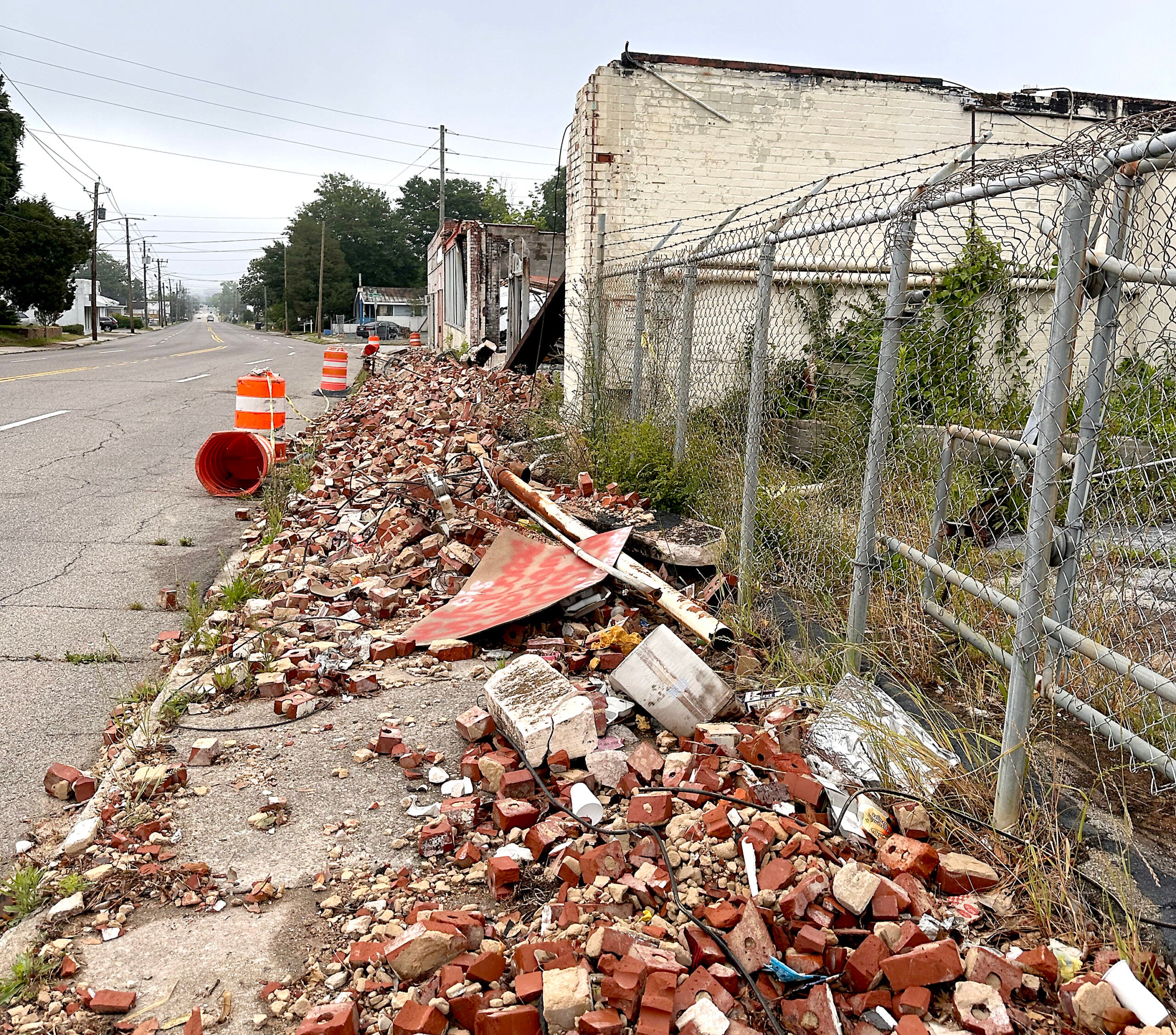 The fire destroyed the store, which collapsed, sending bricks tumbling. Planning doesn’t have a right-of-way crew to remove hazards, but Engineering does, Delaney said.