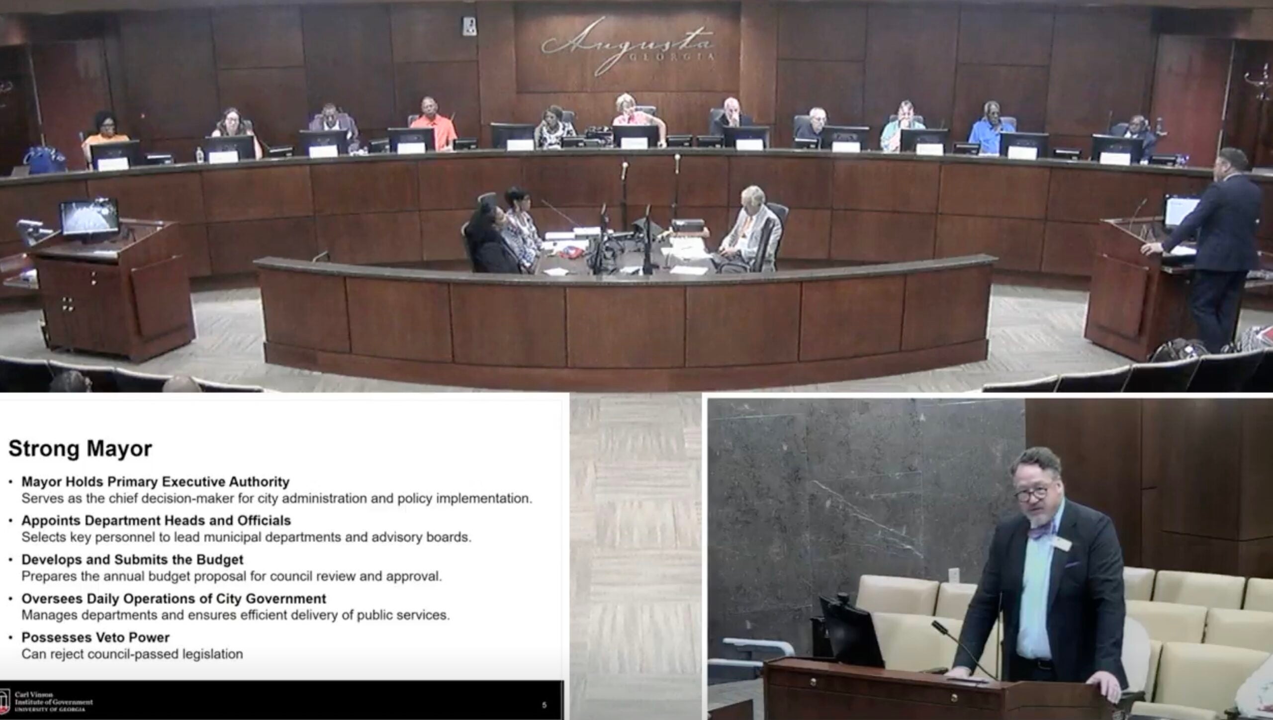 After the speakers, consultants with the Carl Vinson Institute of Government are expected to lead discussions on the topics “strong mayor model” and “administrator versus city manager.”