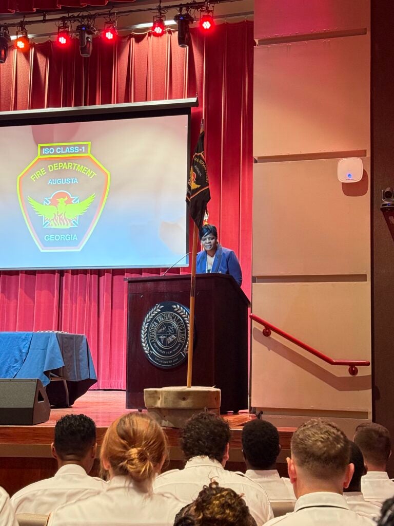Augusta City Administrator Tameka Allen delivered a heartfelt welcome connecting the graduates’ new responsibilities to the city’s recent challenges.