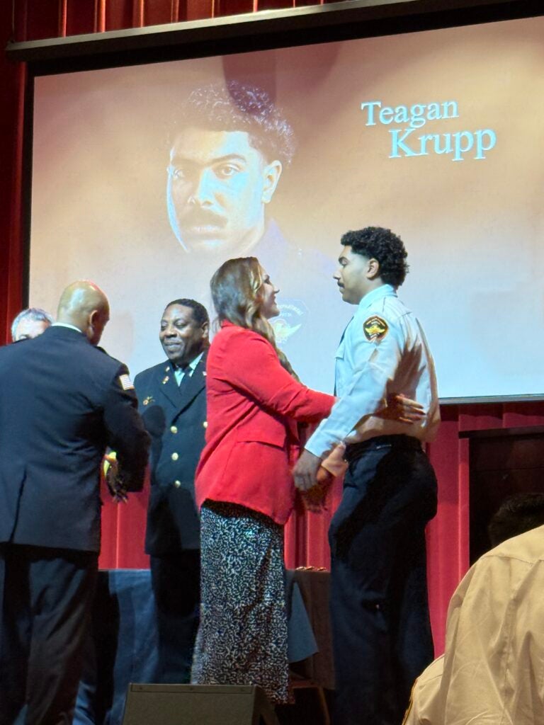The ceremony included a pinning presentation, where graduates were joined onstage by family members and mentors. Special recognitions were awarded to recruits Octavio Castro-Baheza and Teagan Krupp for their outstanding performance during training.