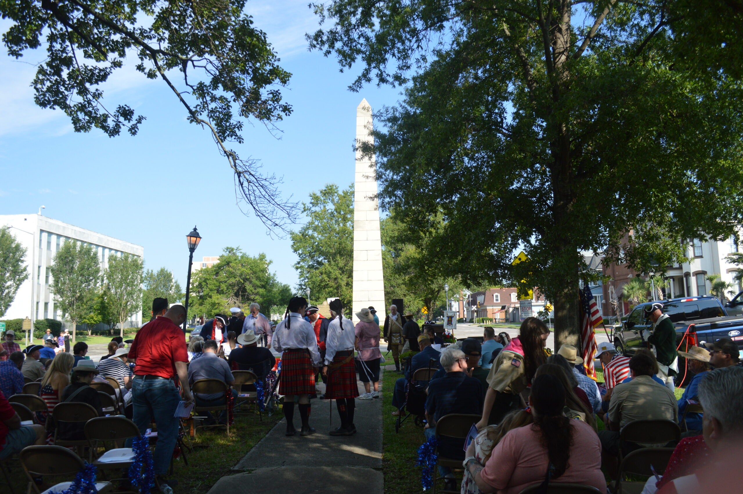 In a tribute to the patriots who helped shape the nation’s founding, dozens gathered Friday morning at the towering 50-foot granite Signers’ Monument on Greene Street to honor Georgia’s three signers of the Declaration of Independence: George Walton, Lyman Hall, and Button Gwinnett.
