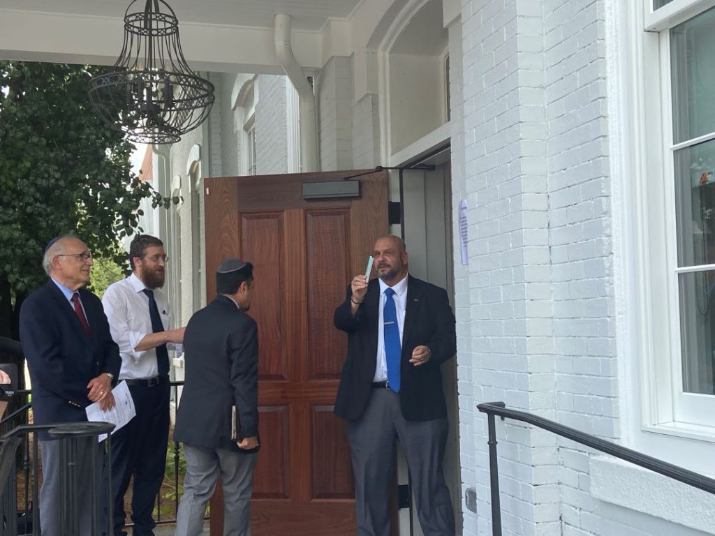 Included in the July 22 ceremony were prayers by local rabbis and the placing of a mezuzah, a parchment with religious texts written on it, over the doorway.
