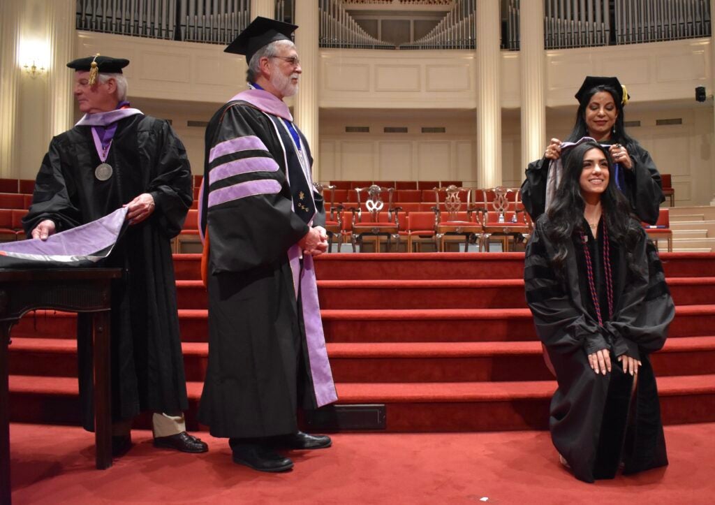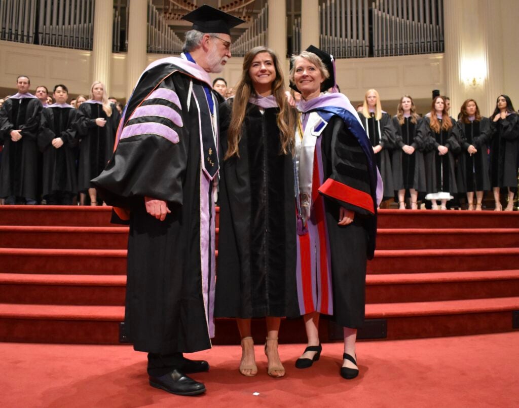 “It was 17 years ago that I sat in this very same sanctuary for my hooding ceremony, and it seems like yesterday,” she said. “It is a day you will never forget. Today, you become a doctor. I am thankful for all of you, and I am thankful we are passionate about this incredible profession. You are our next generation of healthcare professionals.”