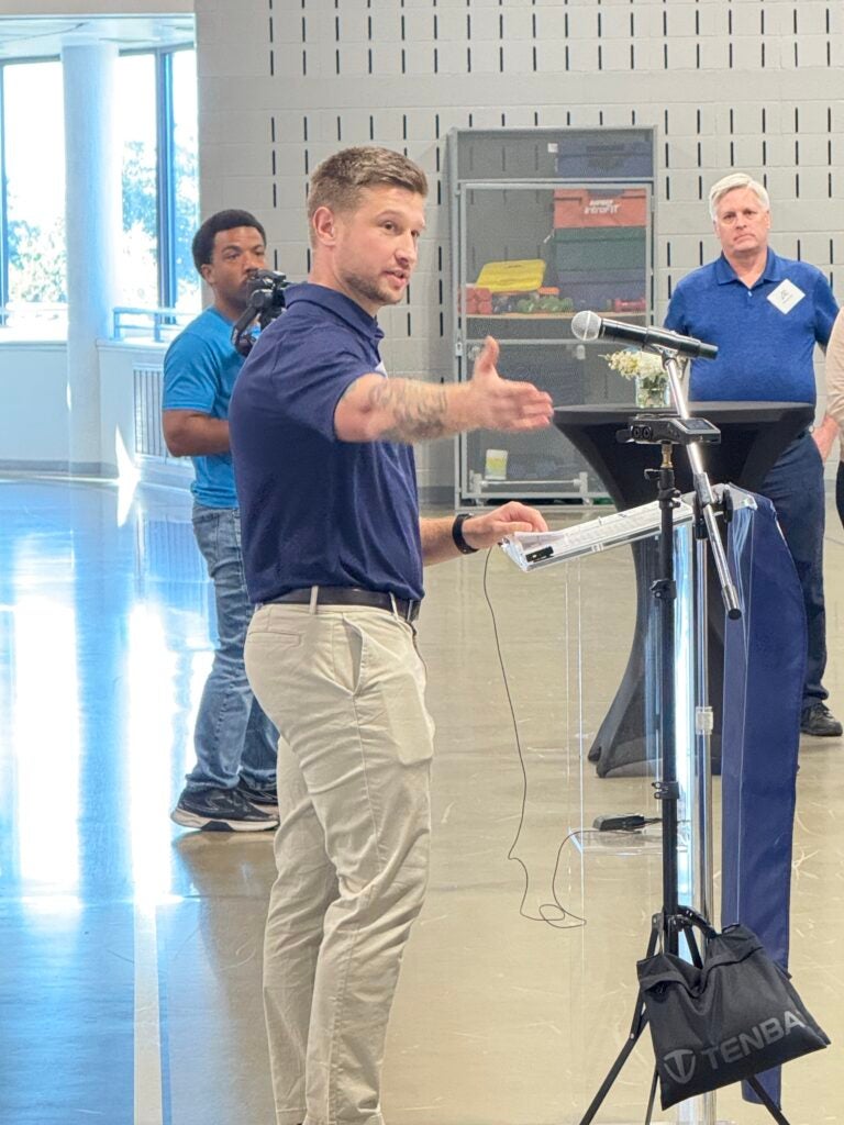 Student athletes Sierra Burns, of the women’s basketball team, and Dean Wilken, of the men’s golf team, also spoke during the ceremony, expressing gratitude for the couple’s generosity.