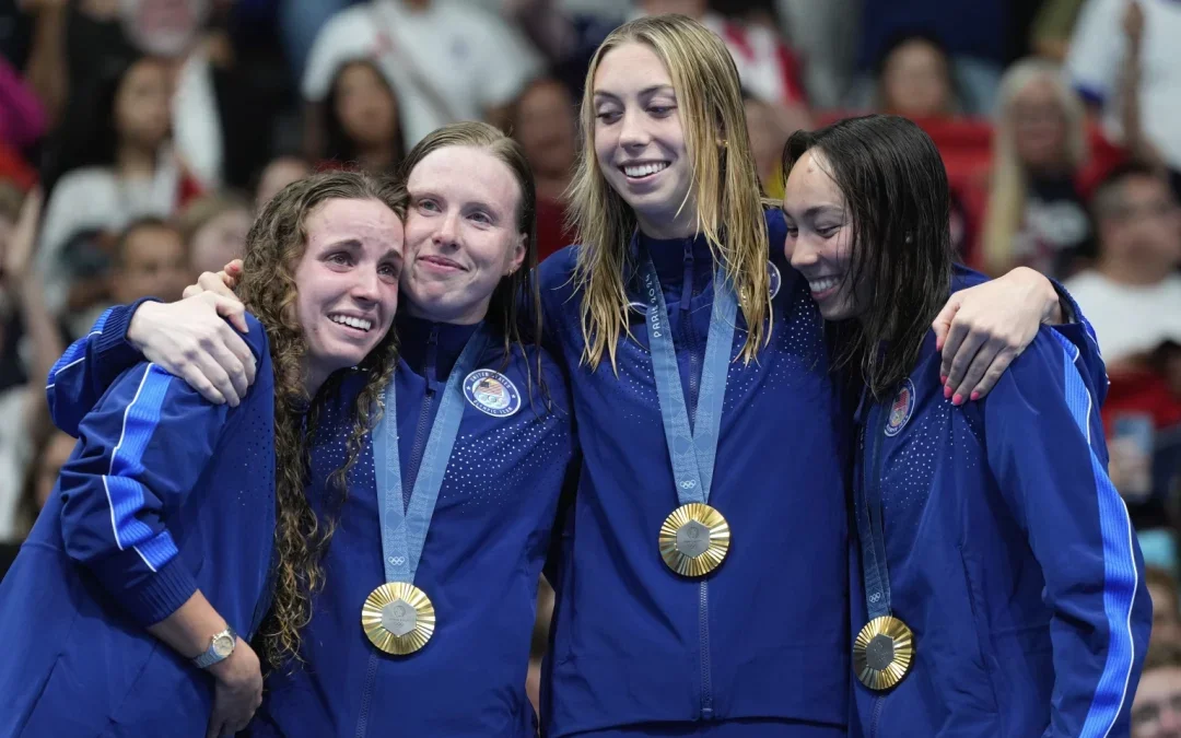On a wild final night of swimming, U.S. sets two world records, edges Australia in gold-medal race