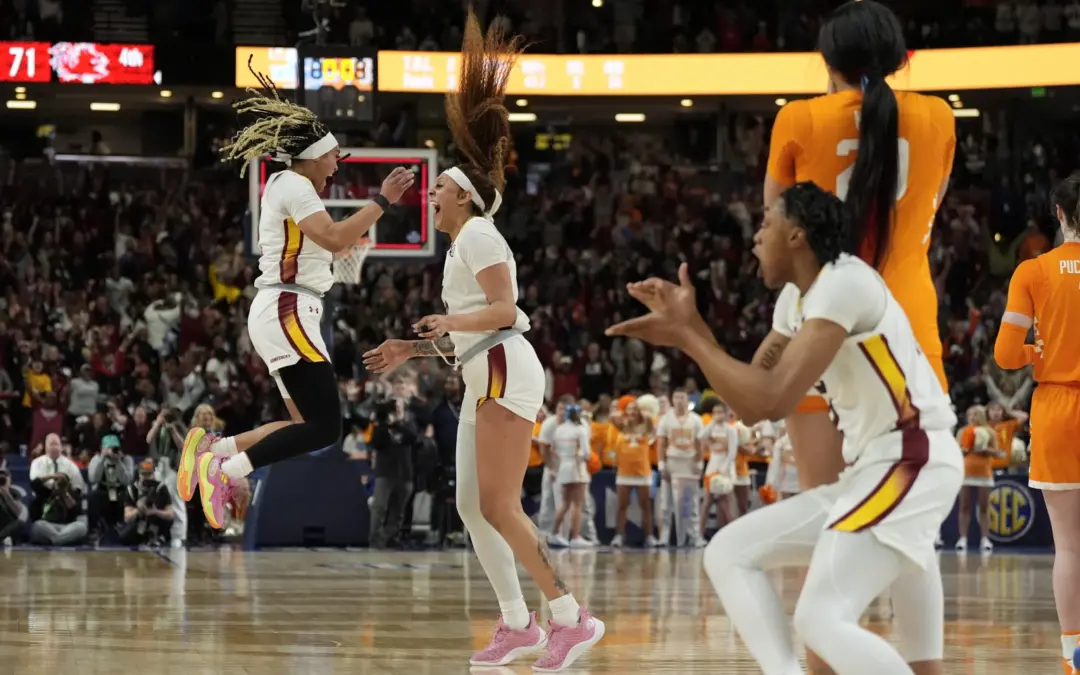Cardoso’s first-ever 3 rescues No. 1 South Carolina at SEC Tournament with 74-73 win over Lady Vols