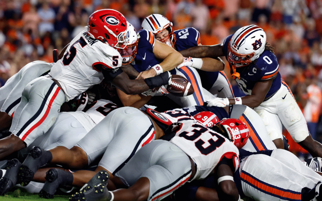 No. 10 Georgia forces a goal-line fumble to seize momentum and beat Auburn 20-10