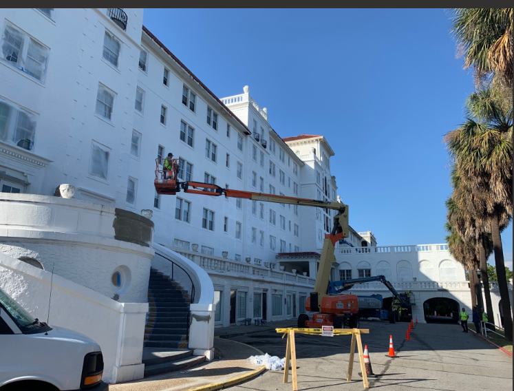 Work crews were seen on the property, located at 2101 Walton Way, applying a fresh coat of white paint to the exterior of the structure.
