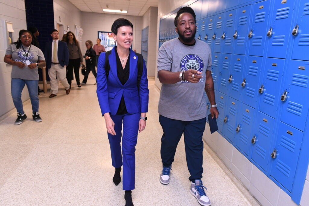 Stephanie Bishop, the vice president of the Milken Educator Awards, was the one to announce Heggs as the winner in front of cheering students and staff. Heggs is the first teacher ever from Burke County Public Schools to get this national award.