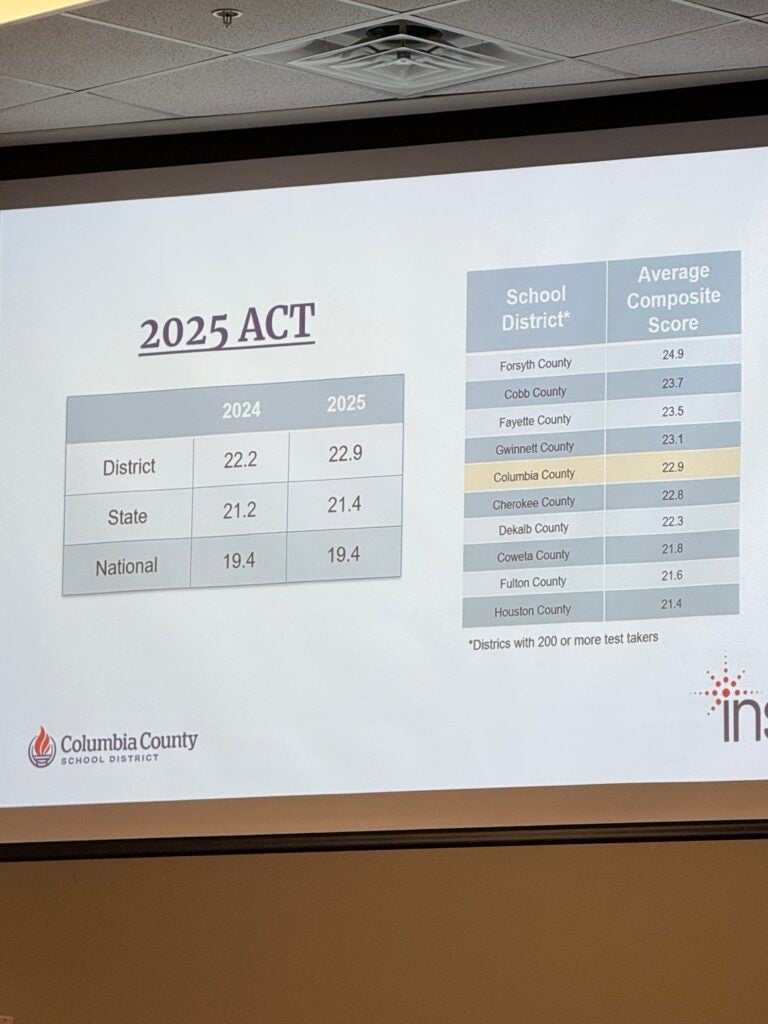 Superintendent, Dr. Steven Flynt, announced that Columbia County’s ACT composite score rose to 22.9, up from 22.2 the previous year.