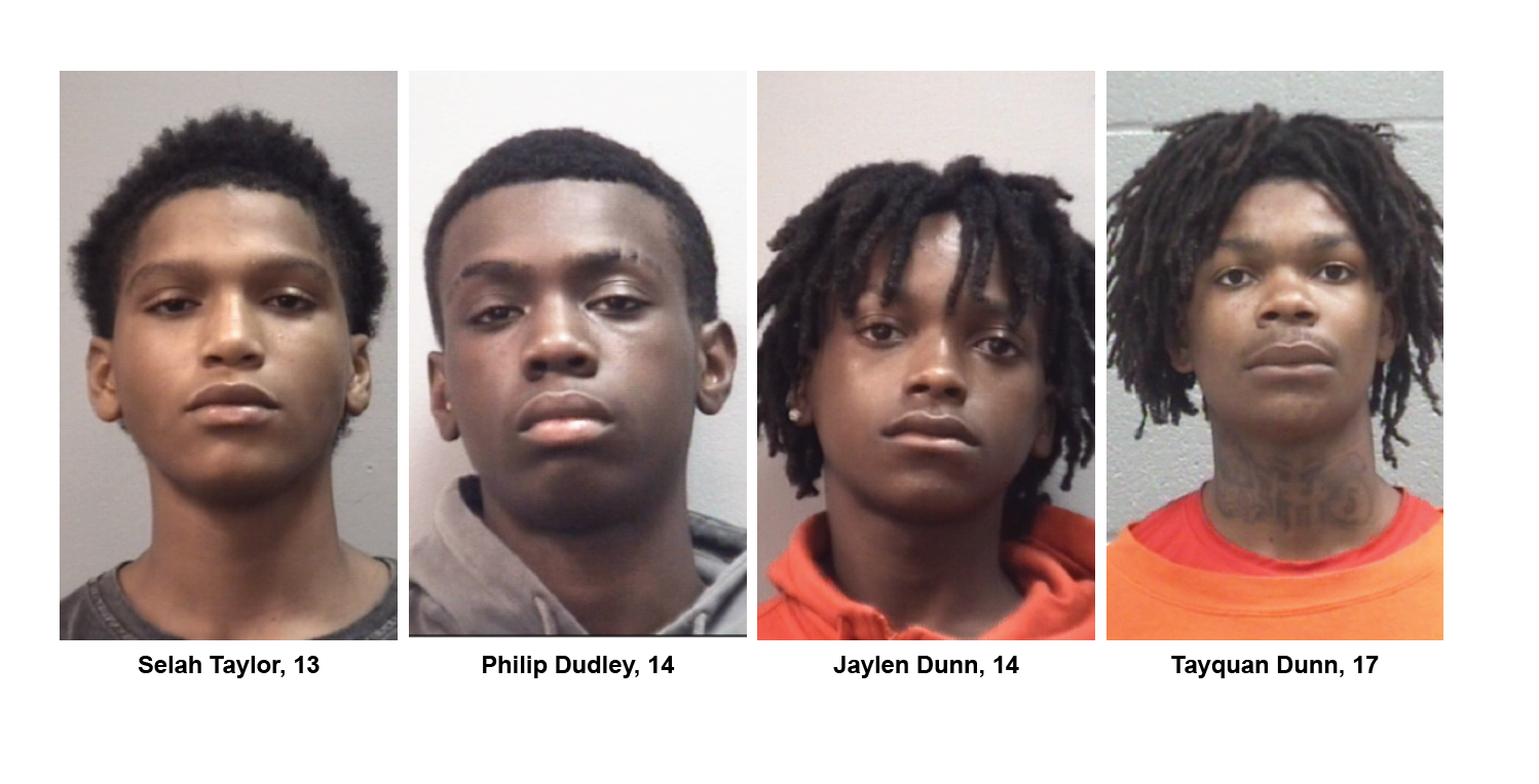 Jaylen Dunn, 14, Philip Dudley, 14, and Selah Taylor, 13, were charged with robbery by sudden snatching and obstruction. They were transported to CCDC where they were processed and taken to Regional Youth Detention Center.