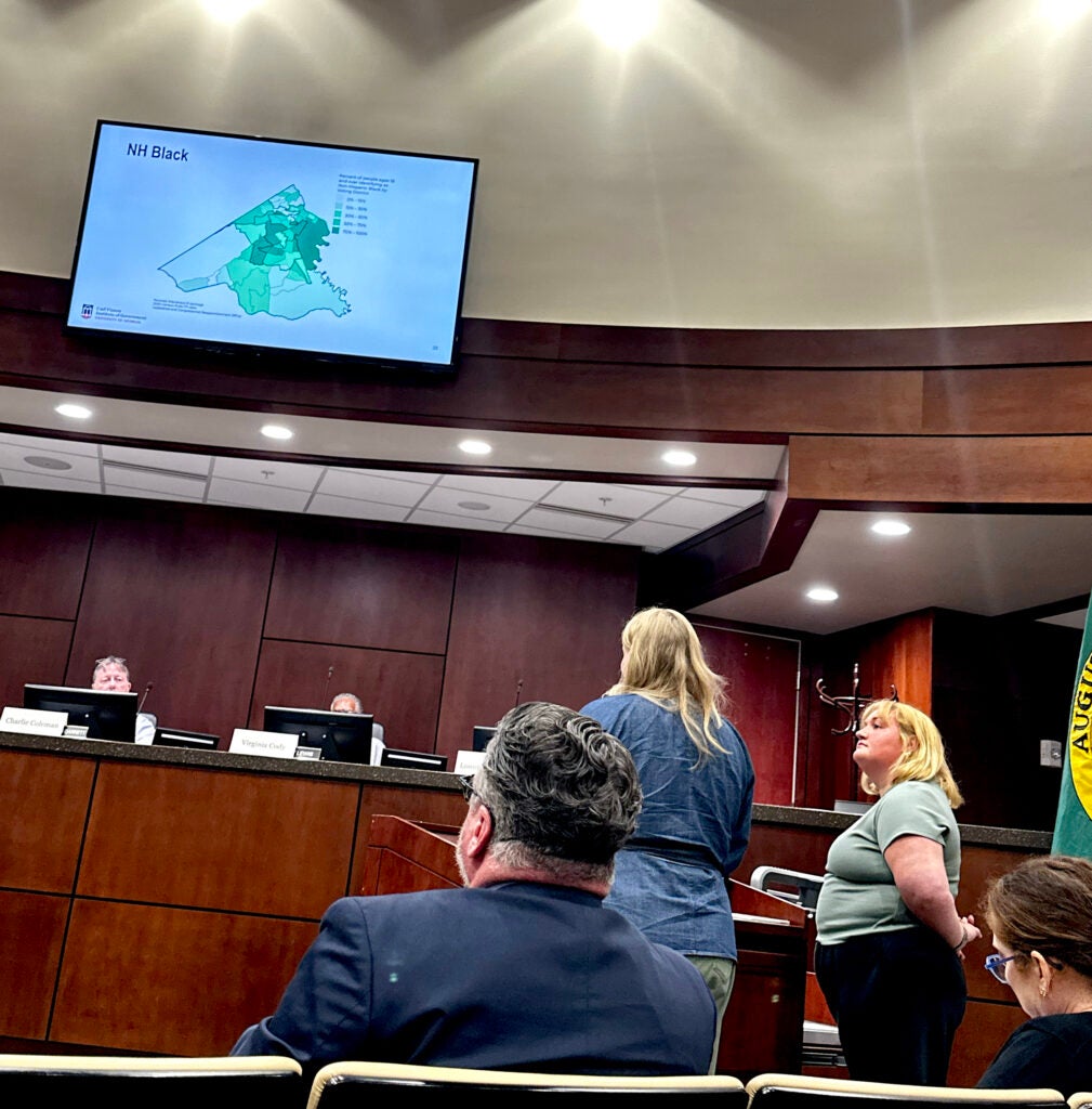 - District 3 is evenly split: approximately 44% white and 44% Black, according to Tolmich’s presentation.