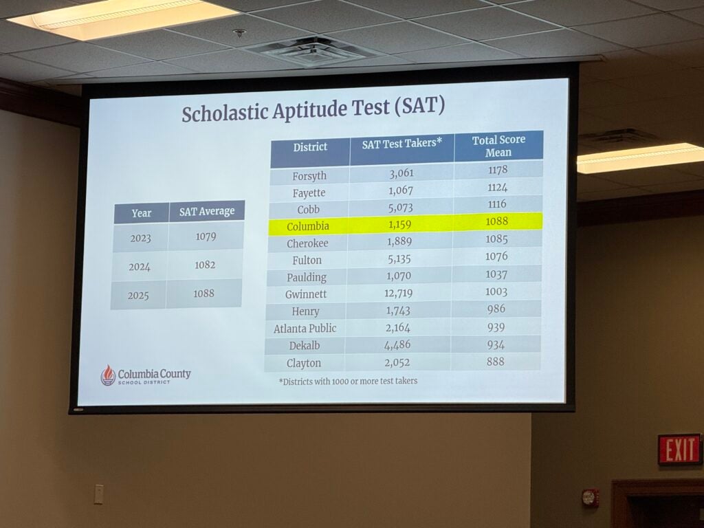The average SAT score rose to 1088, a six-point increase from last year, ranking Columbia County fourth in Georgia among districts with 1,000 or more test takers.