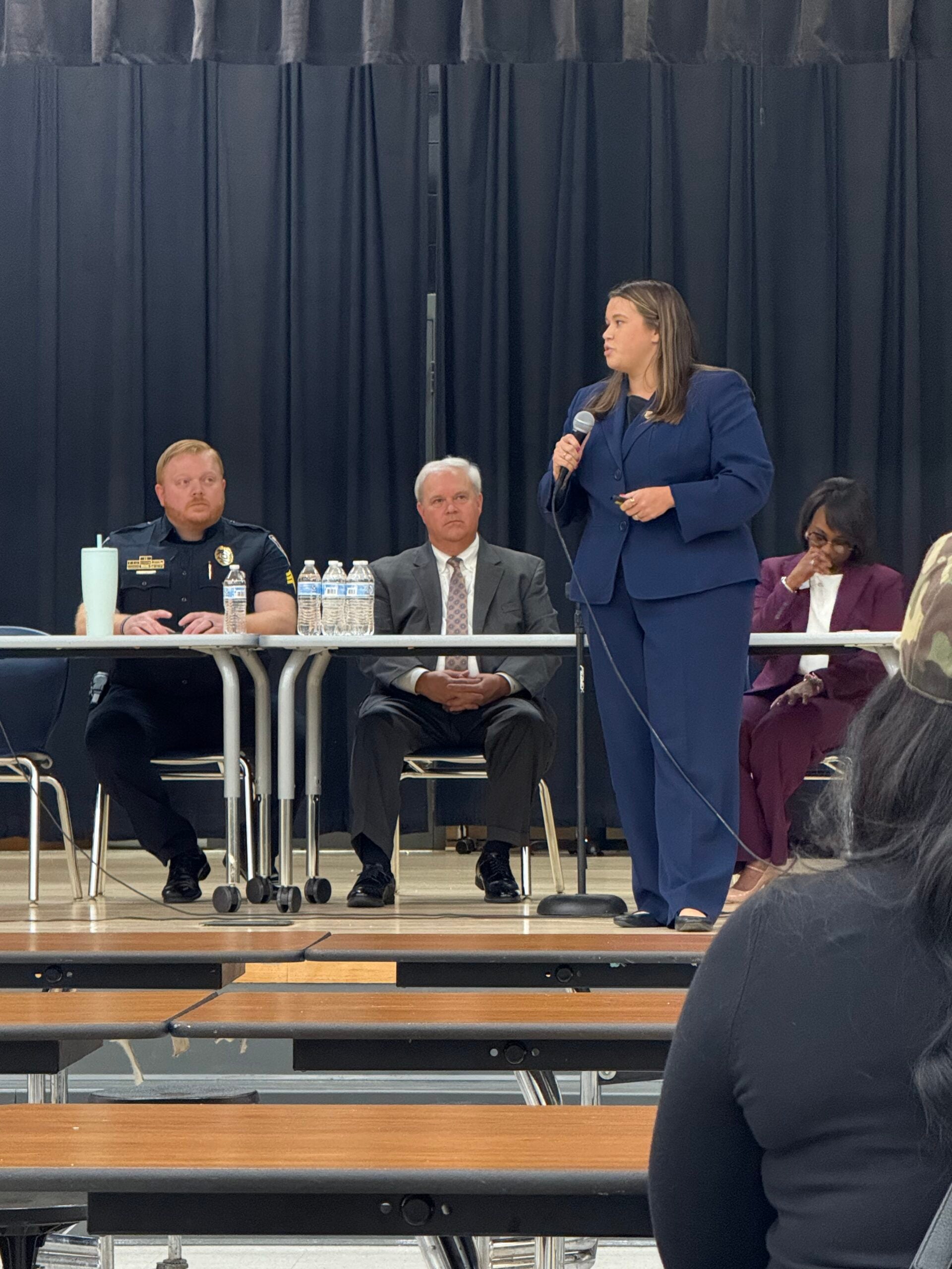 GBI agent Kaitlyn Payne speaks to parents at CCSD forum. Photo by Drew Wall.