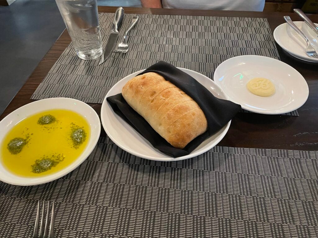 Our bread came next, foretelling the entrees soon to come. The soft white loaf had a nice crust and was served with a fresh pesto and a sweet honey butter.
