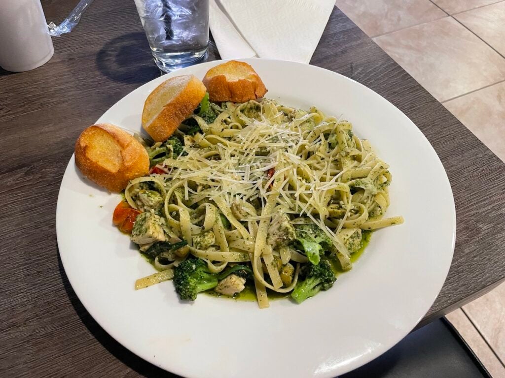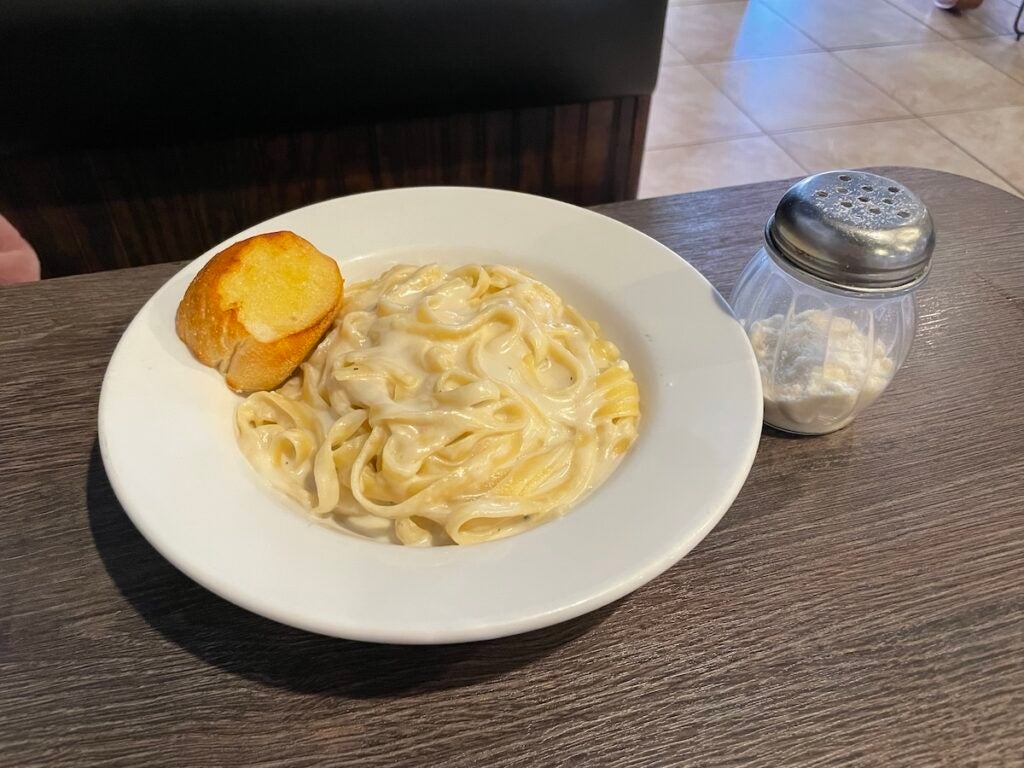 Both our pasta dishes were huge. My daughter’s could have been an adult portion, and mine was even larger. She quickly grabbed one of my garlic breads—she ended up enjoying all three with my blessing and reported that they “go great” with the alfredo sauce and had an “excellent crunch.”