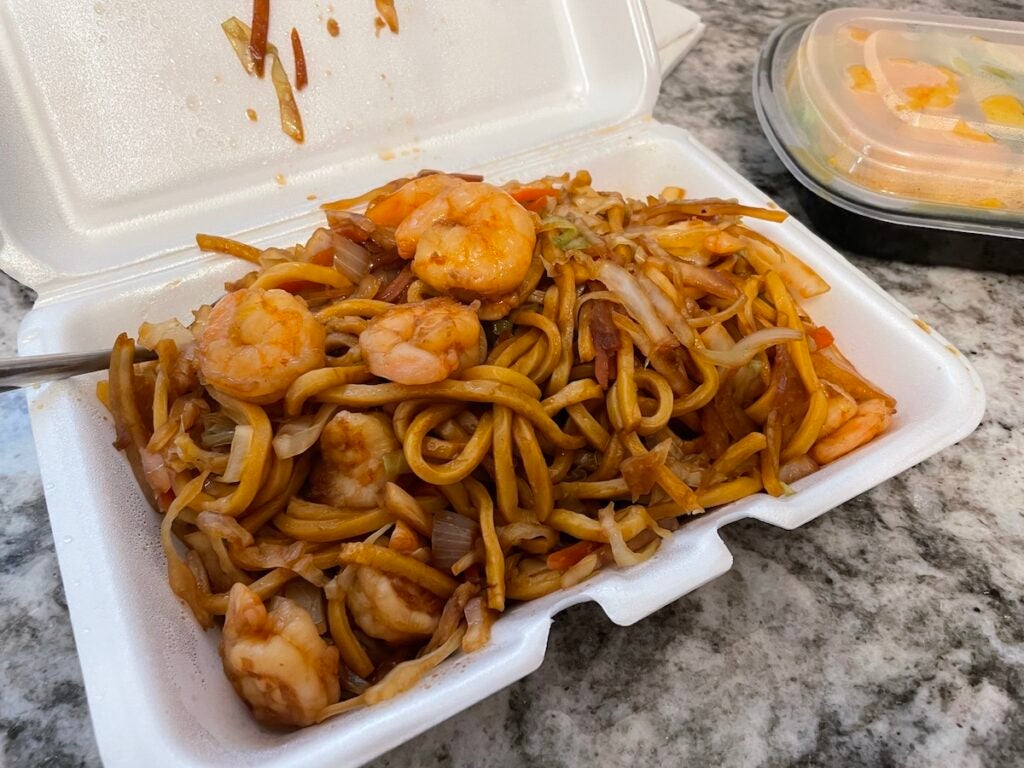 You don’t typically think of curry at Chinese restaurants, although it is often available — and my aunt used to make a terrific yellow curry with potatoes and neckbones, a mashup of Asian and Southern. This curry was also yellow, with a creamy coconut gravy that had a hit of spice at the end. If you want vegetables, this is a great choice because it’s loaded with cabbage, broccoli and snow peas. The shrimp are also generously sized and pop in your mouth when you bite them.