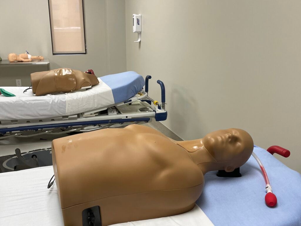 One of the rooms, for example, is scenario-based. “It could be a trauma scenario, it could a medical scenario,” said Samuelson, such as allergic reactions, infections or sepsis, “and we can replicate that clinical environment.” The training room can become an operating room where the students practice surgical care on specialized mannequins. Another room is a skills lab, where residents can practice specific procedures.