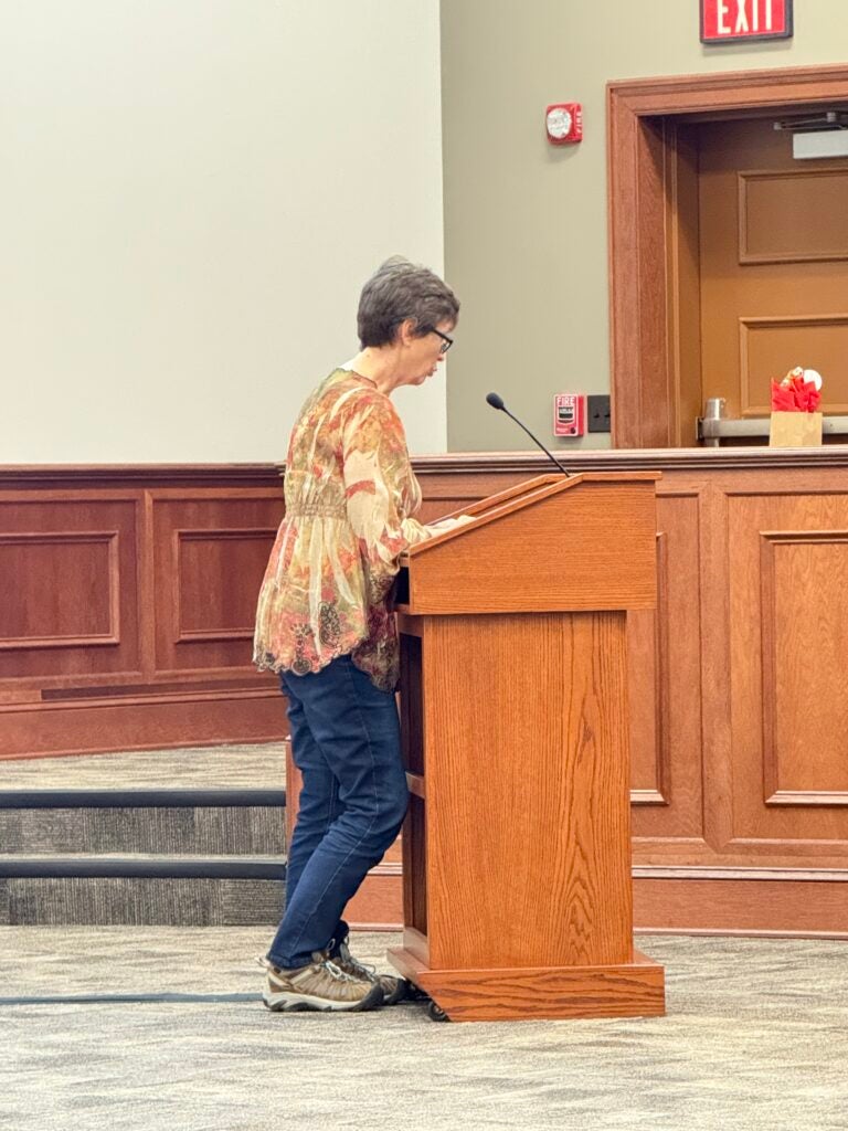 Cara Parker spoke about book reviews and transparency in the media challenge process. She asserted that community members who oppose book removals often feel unheard.