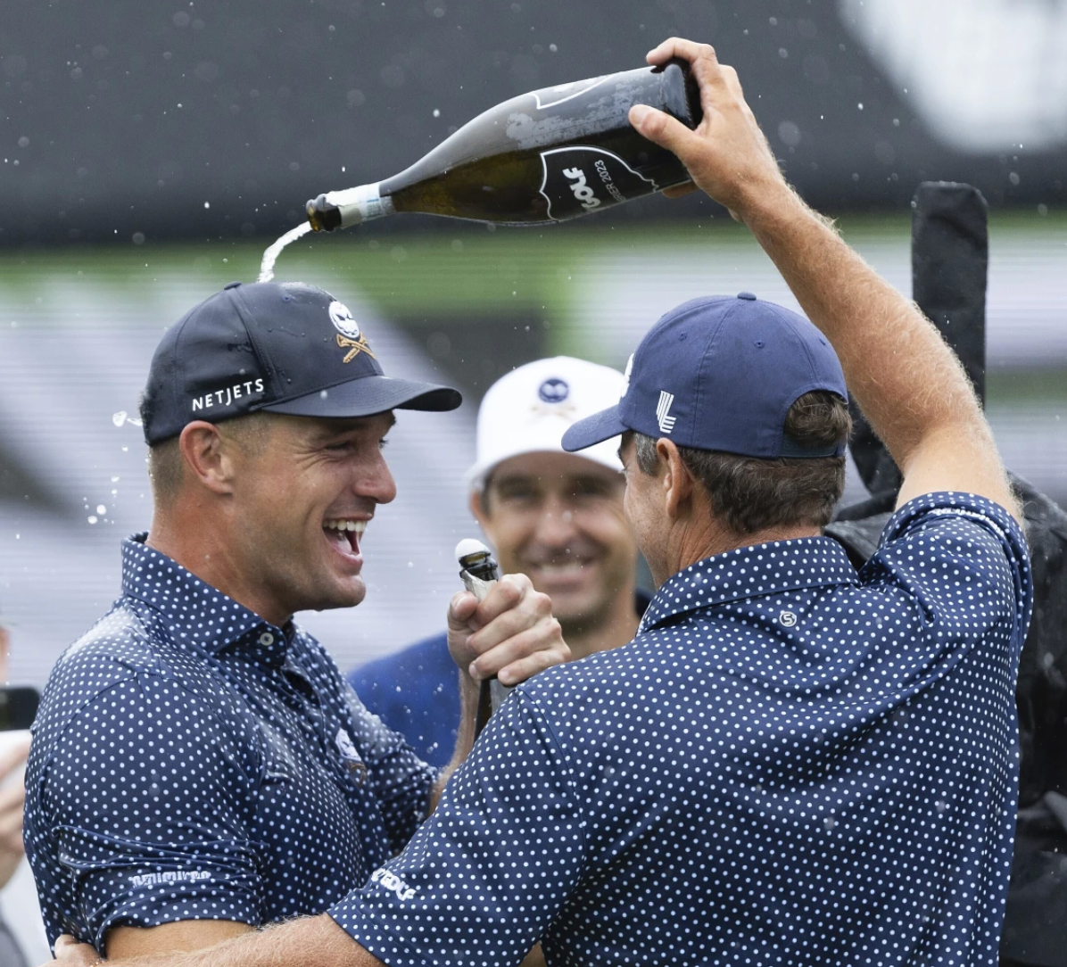 DeChambeau holed a 35-foot putt on the par-3 18th and leapt in the air with both arms extended to celebrate his lowest score ever and first LIV victory.