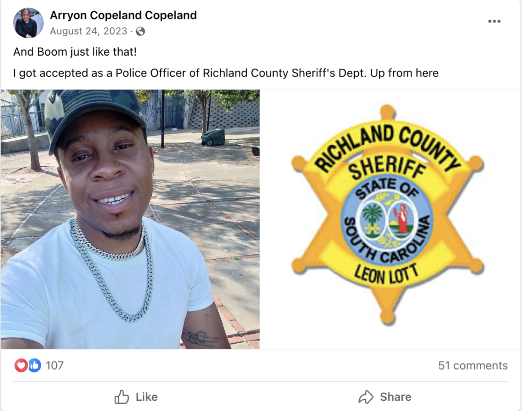 Copeland is a former Army soldier and a longtime church pianist, according to his LinkedIn page. His Facebook page describes his occupation as a resource officer with the Richland County Sheriff’s Department in Columbia, S.C.