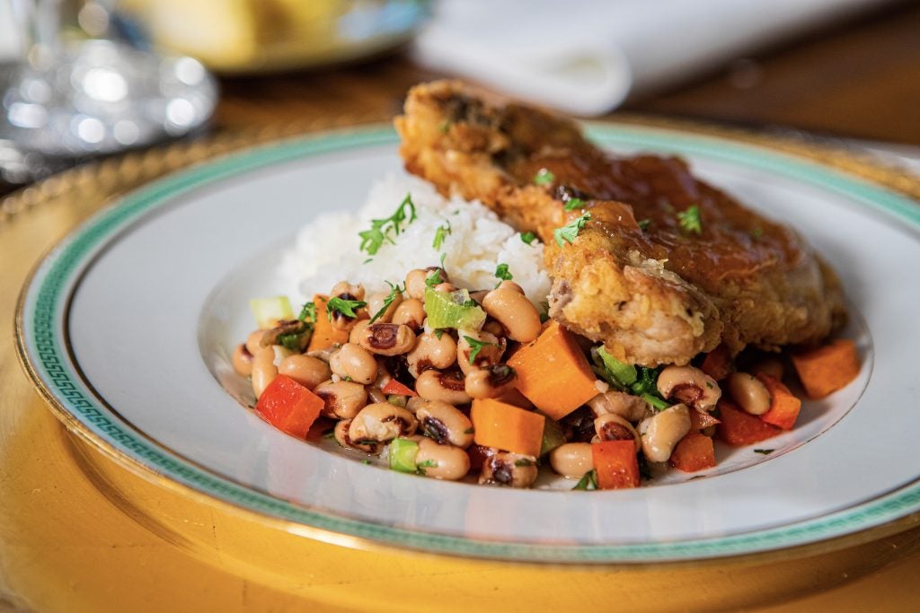 Next up, the pencil thin bone-in pork chop fried up really crispy in a cast iron skillet. Drizzle it with our favorite Peach Preserves from Pearson Farm and you are set with a great sweet & salty main dish. And for luck, which we will all need plenty of in 2023, the Blackeyed Pea salad, another favorite that will be in the book. You will find yourself making that for all kinds of events in the summer, too.
