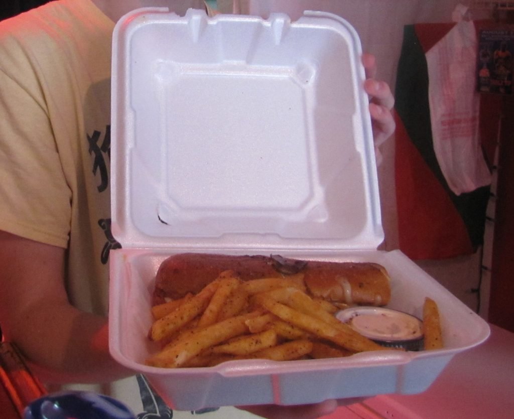 Some of the hot items on his menu include a three-cheese sub with baby portabella mushrooms, onions, and tomato – the least expensive option on the menu along with the devil dog. The cheese combination on the sub is gooey and acrid along with the tomatoes. The baby portabella mushrooms provide texture for the sandwich and are seasoned and have been marinated in a sauce to provide more flavor. In addition, the fries are crispy and lightly seasoned, and the sandwich and fries come with a creamy Greek-style sauce.