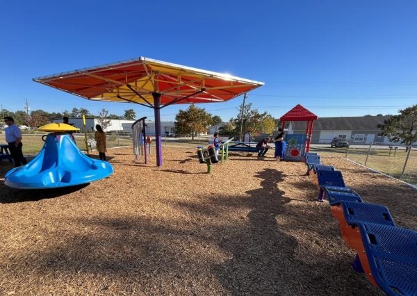 An inclusive playground in Evans is designed for children with disabilities.
