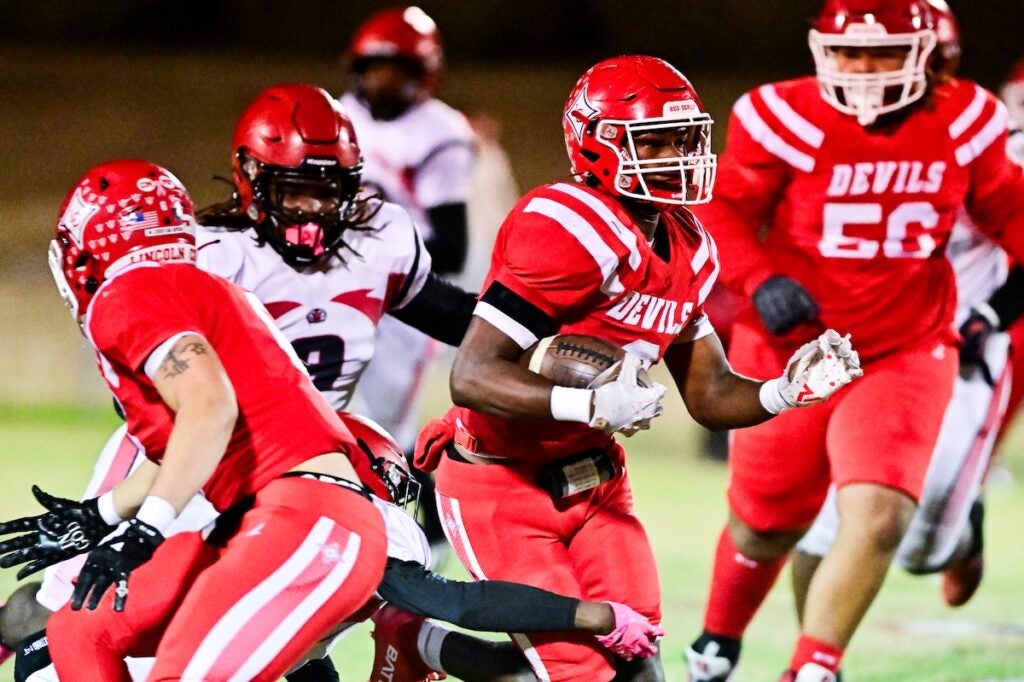 Aiden Jones opened the scoring barrage with 9:23 remaining in the first quarter, punching in a 3-yard touchdown to help Lincoln County build a 21–0 lead after one period. From there, the Red Devils put the game out of reach with a 22-point second quarter highlighted by a pair of touchdowns from Jacobe Moss.