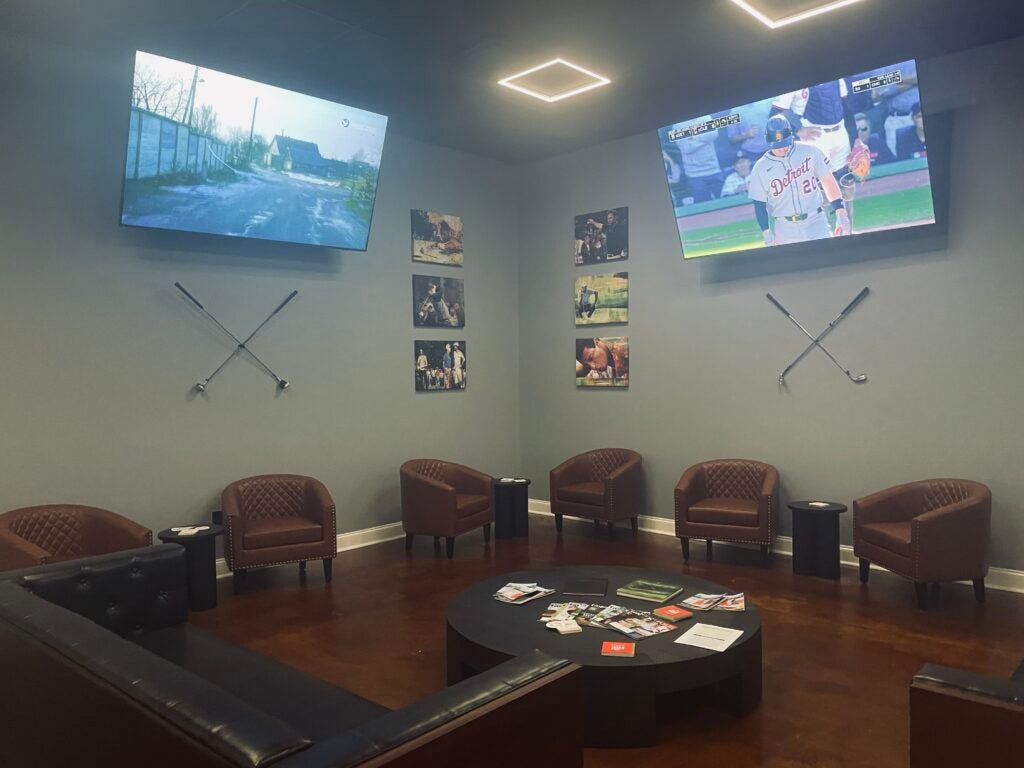 Using tech by golf simulator company TruGolf, the space boasts eight arcade bays for golf, sports and gaming aficionados for range practice, lessons and league play. A sensor detects players’ movements to apply them to the a screen where they can play on some 5,000 simulated courses. The eighth bay accommodates non-golfers with a multicade of 13 games that include soccer, football, baseball and even hunting.
