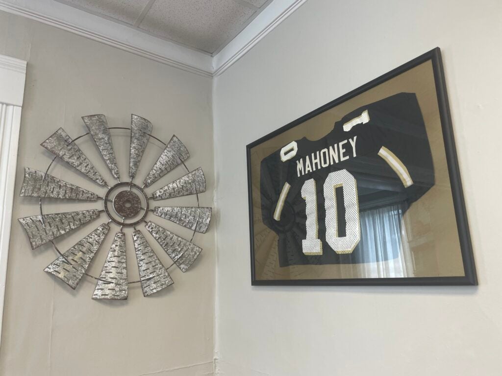 The eatery is set up in a nearly 80-year-old house along Georgia Avenue, is decorated with homey, vintage bric-a-brac. One of those items is a framed jersey of 90’s era North Augusta High football star Michael Mahoney.