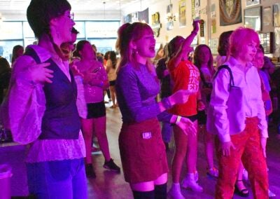 Taylor Swift fans gathered at Grantski’s Record store on Friday afternoon for a listening party. Staff photo by Liz Wright.