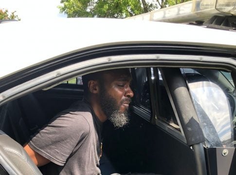 A man was arrested after he attempted to flee from Grovetown police and struck a police car.