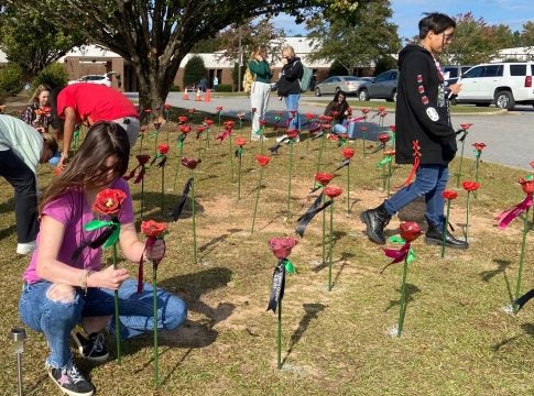 About 250 ceramic poppies were placed at Lakeside High School Wednesday to honor veterans.