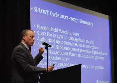 A presentation by the Columbia County School District at Lakeside Highschool offered voters a breakdown of a continuation of E-SPLOST.