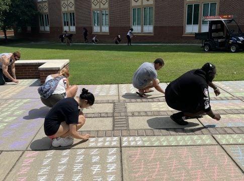 Augusta University sociology students chalked the sidewalks on the Summerville Campus at Allgood Hall on Wednesday, Aug. 31.