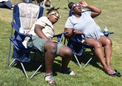 Looking at an eclipse on Monday afternoon, attendees were impressed as they witnessed the sun and moon partially align. Staff...