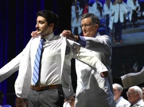 First year medical students donned white coats in a ceremony at the Medical College of Georgia Saturday.