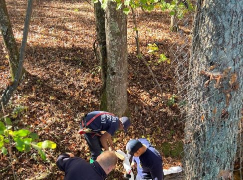Environmental cleanup crews remain on the scene at Rocky Creek where an unknown substance with a strong odor was located.