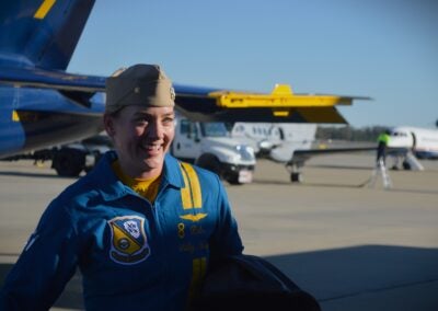 Two U.S. Navy Blue Angels said hello to Augusta on Thursday afternoon with a strike fighter aircraft.