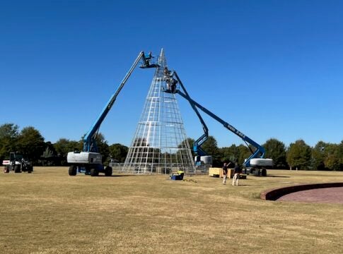 To prepare for the holiday season, Christmas decorations have started going up at Evans Towne Center Park.