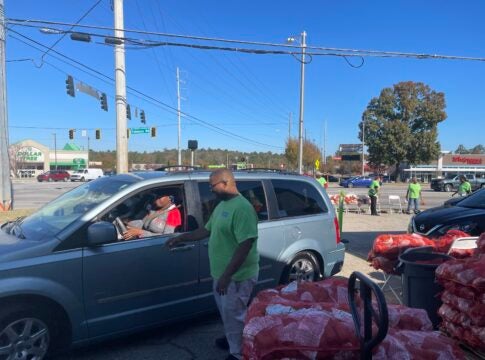 Augusta Mayor Garnett Johnson and staff handed out bags of Georgia-grown sweet potatoes to long lines of locals, Saturday morning.