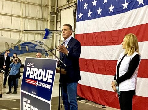 Republican gubernatorial candidate David Perdue is challenging a new state law that gives incumbents an advantage in fundraising.
