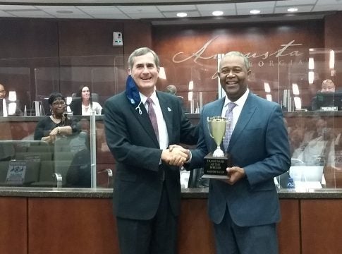 Augusta’s mayor has bragging rights for the next year and a trophy to prove it.