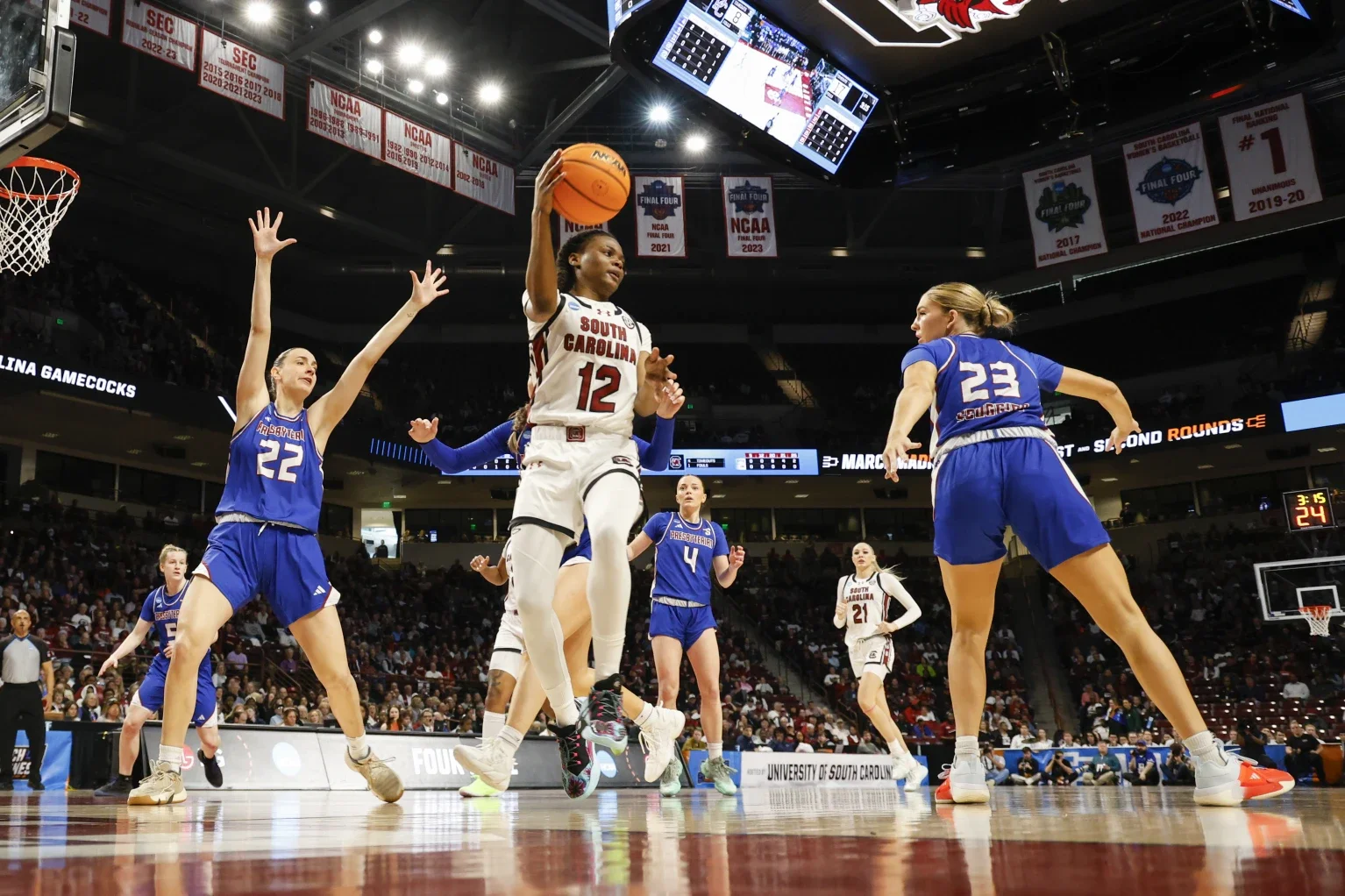 Kitts tied her career high with 21 points on 9-of-9 shooting with a game-high 13 rebounds as the No. 1 overall seed Gamecocks blew past Presbyterian 91-39 on Friday to begin their March Madness run.