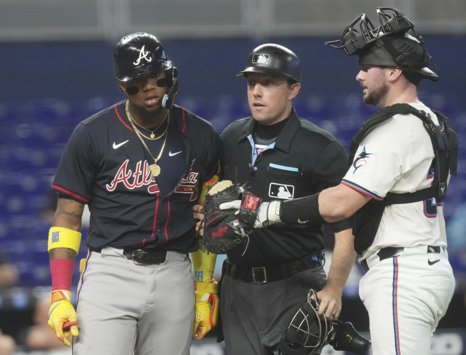 Atlanta star Ronald Acuña Jr. walked four times and was hit by a pitch, leading to the ejection of manager Brian Snitker.