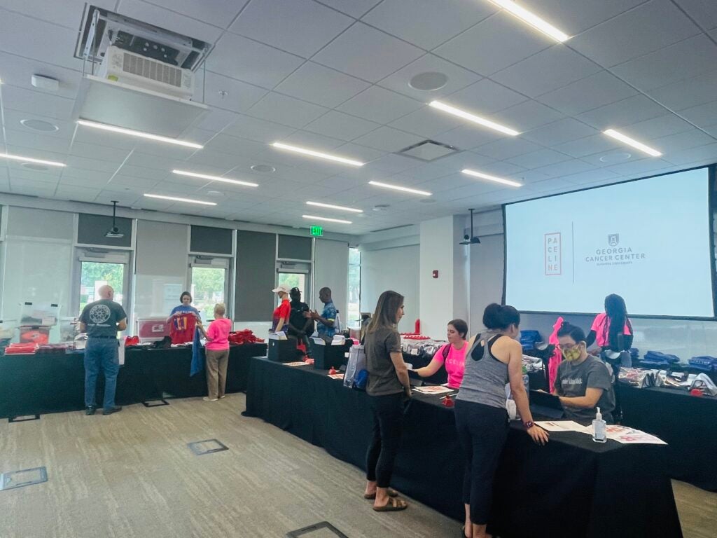 Paceline, the local nonprofit dedicated to supporting cancer research, launches Pace Day its annual, signature fundraising event on Sunday. Saturday morning, the organization hosted its Packet Pick-Up event at the M. Bert Storey Research Building of the Georgia Center, where registered participants could receive bags of items for their 5k run the following morning, such as water bottles, T-shirts and event sunscreen from the cancer center.